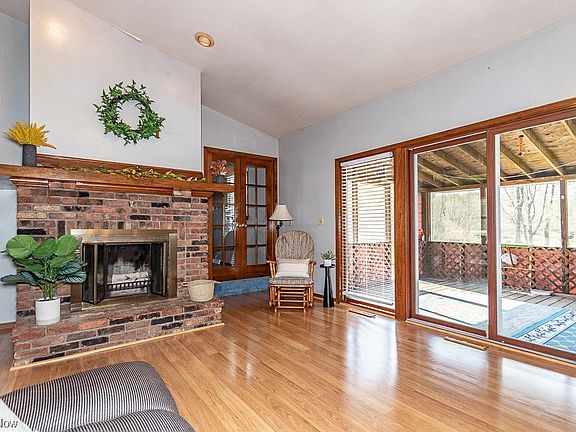 Welcome to this well-maintained 3 bed 2 1/2 bath ranch on a tree-lined street in desirable Chardon, Ohio, offering pride of ownership. Conveniently located in the country, but only 5 miles from Chardon Square. A paved driveway leads to the 2 car attached garage that features additional space for storage. Cater to your hobbies and toys with a large 30' x 40' outbuilding that offers electric, drains, a concrete floor and 9' overhead door. Upon entering the home, you will find a large open family room with wood floors and a wood burning fireplace, newly installed sliders lead you to the enclosed back porch. Adjacent to the family room, is a cozy and comfortable living room with large picture windows for plenty of natural light. Access the spacious eat-in kitchen with updated LVT flooring from both the family and living rooms. Down the hall, you will find two nice sized bedrooms and a full bath. The primary bedroom has en-suite bathroom to complete the main living area. First floor laun