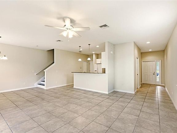 Just under 2,000 sf of open living space you will enjoy this beautiful 2 story corner unit Townhome with 3 bedrooms plus a loft upstairs; 2 full baths; a half bath downstairs and a two car garage. Kitchen has white cabinets and appliances; granite counters; backsplash and a pantry. Screened in lanai with a partial view of the lake and fountain. Walk upstairs and you can use the huge loft for entertainment; office space or kid's playroom. The Owner's suite has a nice size walk in closet and the owner's bath has a shower; dual sinks and a closet. The two other bedrooms and full bath are down the hall, which one of them has a walk in closet. Laundry room is located upstairs. All tiles downstairs and laminate flooring on staircase and upstairs. This is a gated community with a clubhouse; community pool/spa and saunas in both men and women's locker rooms; exercise room; play area; tennis and basketball courts, BBQ and picnic area, etc. Centrally located and close to everything; Gulf beaches, Mercato, restaurants, movie theatres, shopping, etc. Fiber optic cable and internet included.