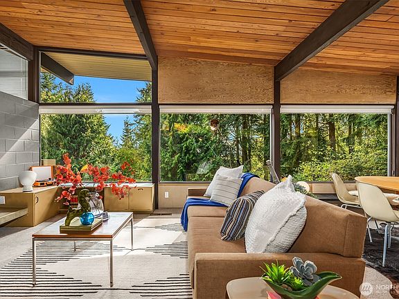 One of 3 Paul-Kirk designs in storied Hilltop community, this special residence has had just 2 families in 75 years fortunate enough to call it "home." In quintessential mcm style, a modest but stylish front opens in back to vaulted ceilings with expanses of windows in every room. The entire back of this home faces due south, with deep eaves delivering smart passive solar use in spectacular style. MCM architects were "green" way before the term became trendy. A covered patio/deck off the kitchen/dining area faces west & extends your living space year-round. Lower level has high ceilings, lots of windows, & opens to the backyard, w/a 2nd wood-burning fireplace keeping things cozy. 3rd bedroom is warm & inviting. Here's your Unicorn.