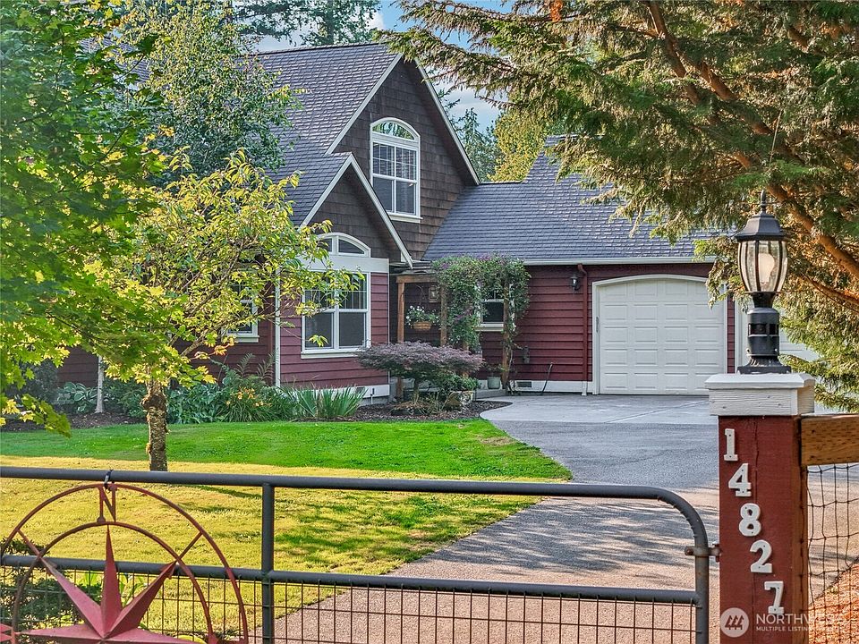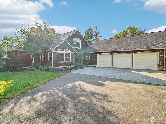 Custom-built 4-bedroom retreat on tranquil acreage with Olympic Mountain views. Vaulted great room with stone fireplace, hardwood floors. Slab granite kitchen with gas range. Accessible design with wide hallways and main-floor primary suite with dual closets and spa bath. Expansive two-tier deck overlooking beautiful fields. The current owners built a barn with an impressive heated art studio/tack room. Covered RV parking with hookups and rare onsite pump-out and heated hobby/bonus room above the garage. Sprinkler system, tractor and equipment shed and a deer fenced yard as well. A peaceful, private sanctuary just minutes from town.
