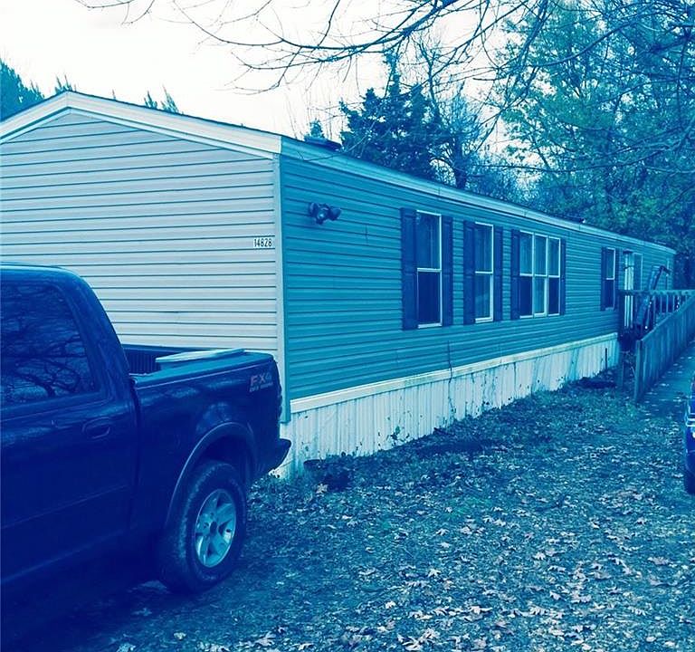 This is a Mobile/Manufactured home located at 14828 Mountain View Road, Elkins, AR. Mobile home includes a 3 bedroom, 2 full bath and approximately 1,184 square feet, wooded area all around. The property has a lot size of 2 acres and mobile home is a 2004 edition.
