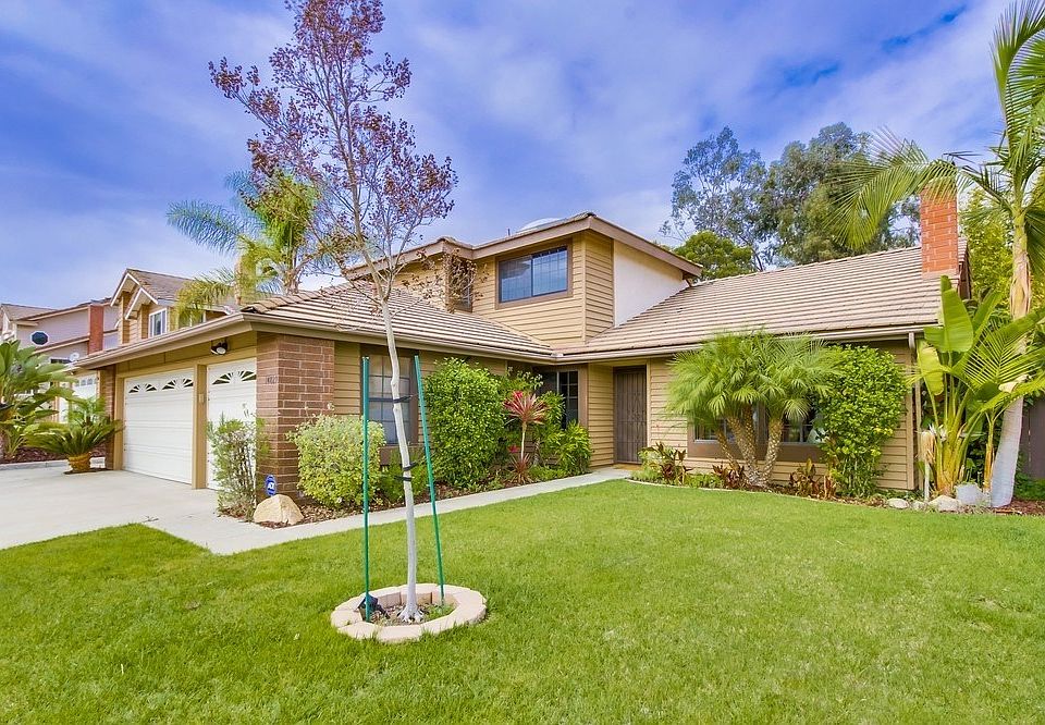 Located in desirable Rancho Arbolitos. Salt water pool/spa heated by solar. Liv rm w/brick fireplace & volume ceilings. Kitchen features granite tile counters & Travertine flooring. The bathrooms have been updated. Two master suites one of first level. The second level master BR has a walk-in closet w/built-ins & ensuite BA w/Travertine flooring dual sinks & shower. Lg FamRm w/vaulted ceiling & French doors to patio. Lg raised wood deck for relaxing or entertaining. 3 car garage.