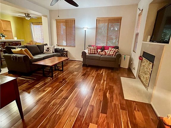 Welcome to the great Villages of Avalon! The house is absolutely beautiful, extremely clean and TURN-KEY, you will feel the pride of ownership in this home. Sellers recently installed ceiling fans throughout the house, new AC unit and water heater. Another great upgrade is that all windows have window films to protect the interior from harmful UV lights and summer heat. There is a custom built-in BBQ with natural gas so no need to get a propane tank when your friends come over to relax and it's under the solid patio cover so you can enjoy outdoor dining and morning coffee even on a rainy day! The backyard has beautiful stamped concrete and very low-maintenance landscaping with easy to maintain plants and a nice shade-tree. The home offers an easy to flow open floor plan with a comfortable size kitchen and dining area; tile flooring in the kitchen and dining area, wood plank flooring on the Living room floor and large neutral colored tiles in the hallways for easy cleaning and maintenance. The front porch has a custom iron gate to enclose the front for privacy and security. There is a 1/2 bath by the front entrance. There are 3 bedrooms upstairs with 2 full bathrooms and the laundry unit for convenience. The HOA offers amenities with low fees which include the community park, sparkling pool & spa, club house and picnic area with sports court. The house had never met any animals nor children since the house was built.