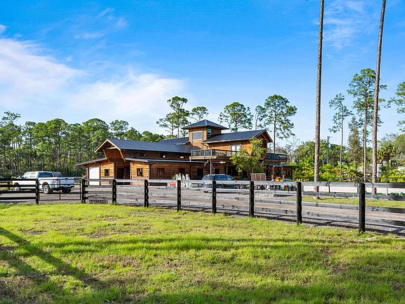Escape to this one-of-a-kind 10 acre sport horse farm for ultimate privacy and enchantment. This farm provides a secluded getaway among the tropical landscaping and gorgeous Florida pine trees. However, it is located just minutes from Wellington! Come see the brand new 17 stall custom Log Cabin barn and top-tier equestrian facility! The main house on this property features just under 3,000 sq ft of living space and a backyard retreat that boasts a large freeform pool and covered cabana; all nestled within a park-like setting. The home's master bedroom has a private screened-in porch and an ensuite with his and hers vanities, walk-in shower and a freestanding tub. There are 3 guest bedrooms & 2 full guest baths, open concept living spaces, a massive bonus room, and a 40' Florida room with 2020-07-17