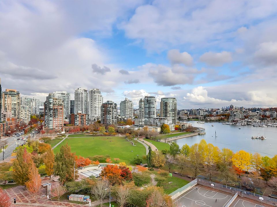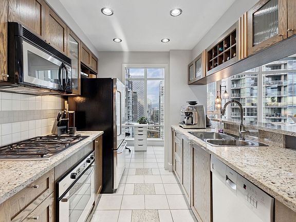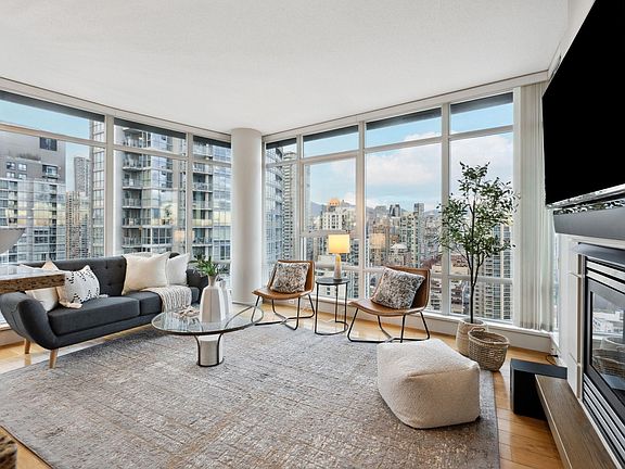 Welcome to The Waterford, one of Yaletown's premier waterfront residences. This elegant 2-bedroom + den, 2-bathroom corner suite offers over 1,100 sq. ft. of refined living with stunning views of David Lam Park, False Creek, and the Vancouver skyline. The bright open-concept layout features expansive windows, hardwood floors, air conditioning, and a cozy gas fireplace. The gourmet kitchen boasts granite countertops, wood cabinetry, stainless steel appliances, and a gas cooktop. Enjoy a private balcony, versatile den, in-suite storage, plus two parking stalls and a locker. Residents benefit from 24-hour concierge, a guest suite, and access to Club VIVA's resort-style amenities, including indoor pool, hot tub, steam room, squash courts, gym, lounge, and theatre.