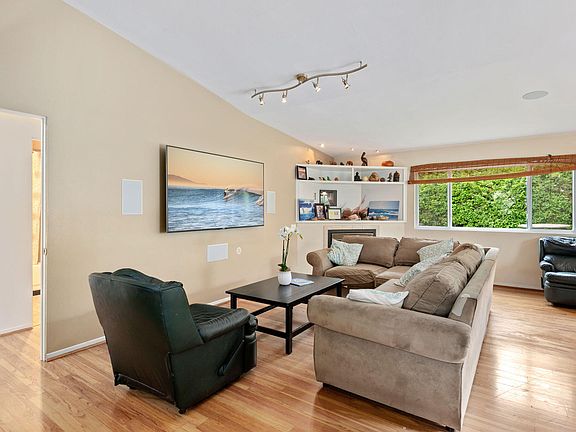 Located on a desirable cul-de-sac in Carpinteria with mountain views this 3 bedroom 2 bath house is ready for its new owners. The front yard is custom designed with drought-tolerant mature landscaping and irrigation. The living room boasts high vaulted ceilings and a large 72 ''flat-screen TV (included in the sale) with a custom built-in sound system installed and designed by Mission Audio. Bright dining space flows to the side yard patio perfect for dining al fresco. The backyard has great potential and includes a raised garden box and a custom spa. All bedrooms include built in California Closets and the house has dual-paned windows throughout.  La Paloma is located close to parks, schools, and all things Carpinteria.
