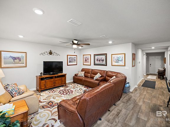 Welcome to Heather Terrace in Foley! This 3 bedroom, 2 bath home was built in 2020 making it GOLD FORTIFIED, giving you a modern style with peace of mind. Step inside to find an open-concept layout with luxury vinyl plank flooring, custom PLANTATION SHUTTERS throughout, and ceiling fans in every bedroom for year-round comfort. The kitchen, living, and dining areas flow seamlessly together, making this home perfect for everyday living and entertaining. Outside, enjoy a spacious backyard, GUTTERS, and hurricane protection features, for added savings and security. Additional perks include a smart home system and classic brick exterior for timeless curb appeal. Conveniently located in Foley, you’re close to shopping, dining, and the beautiful Gulf Coast beaches. This move-in ready home has it all so schedule your showing today! Buyer to verify all information during due diligence.