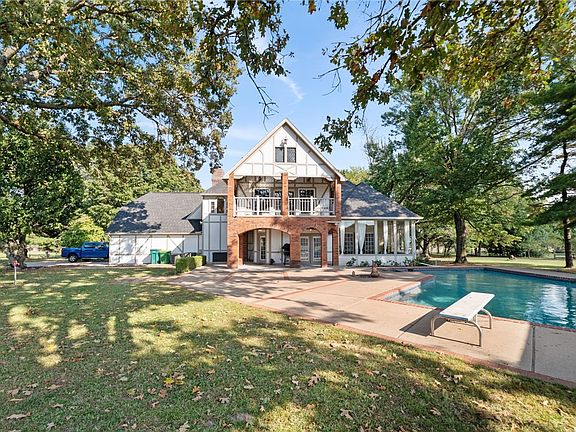 In ground poolLarge flat acreageSplit rail fenceOutdoor balconyHidden bonus roomPrivate gated entranceTudor style home