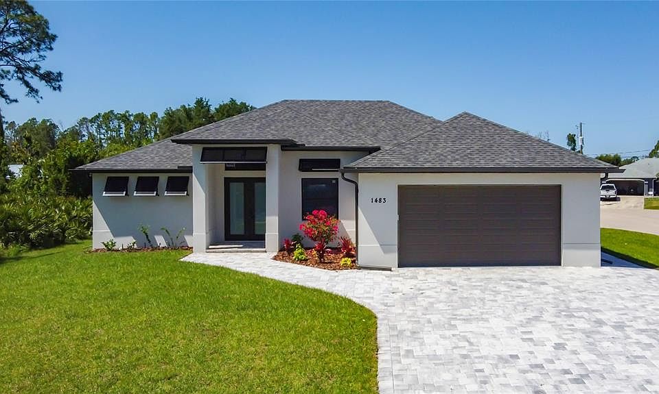 AMAZING 2024 BRAND NEW HOME! See the FULL 3-D Tour at www.BestNorthPortHome.com Nearly 2000 square feet under air! At first glance you will LOVE the splendid curb appeal. A HUGE semicircle extra wide PAVER DRIVEWAY and sidewalk lead to a grand double door entrance. The soffit lighting, tastefull landscaping, and a Hunter irrigation system add to the allure. When entering the grand entrance you are greeted with top quality plank style tile flooring. A large open floorplan with a unique coffer style ceiling and upgraded fixtures. The exeptional kitchen has vast cabinet and counter space with a heavenly quartz pattern for the counters and full wall backslash. Soft close doors and drawers, sleek pleasing cabinet hardware, a pot filler over the stove top as well as the enormous island with ample added storage show the attention to detail and strategic planning incorporated into the home design. The superb appliance package will satisfy and impress. The fully vented range hood allows for excellent ventilation when needed. The almost 300 square foot primary bedroom will be your resting oasis with a tray ceiling and two walk in closets. Enjoy the desirable upgrade of extensive built in closet shelving. You will LOVE alleviating all stress in the deep modern style soaking tub while you listen to your favorite tunes on YOUR owner's suite bathroom BLUETOOTH ENABLED MIRROR! Double sink basins and an impressive walk in shower with floor to ceiling Quartz and the always amiable heavy glass door shower entrance complement the appealing fixtures. Your Guests will be appreciative of the large bedrooms and the awesome guest bath. WHOLE HOUSE REVERSE OSMOSIS WATER TREATMENT SYSTEM. INSTANT HOT WATER DISTRIBUTION SYSTEM. IMPACT DOORS AND WINDOWS. OVERSIZE CORNER LOT. Laundry will no longer be a chore. You will enjoy the air conditioned laundry room with abundant built in cabinets, a nice clothes folding counter, and a handy sink basin. Remember we talked about strategic planning and attention to detail in the home design process? As you relax on your lanai, you will be glad the OUTDOOR KITCHEN ROUGH IN has already been completed with ELECTRIC, PLUMBING, AND VENTILATION! There is even an OUTDOOR SHOWER for when you add a pool or if you just want to wash the dogs. lol Get on this GREAT OPPORTUNITY quickly! Enjoy the area Beaches. North Port is rich with archaeological history, beautiful natural springs and more than 95 miles of freshwater canals. Choose to play golf at Heron Creek Country Club only minutes away. Convenient to shopping and restaurants. Baseball lovers will find this home is located a short distance from Charlotte Sports Park and a short drive to the Cool Today Atlanta Braves Spring Training Stadium. Have fun splashing around at the North Port water park! ENJOY the beaches and boating, fishing and golfing, from nature discovery to shelling and collecting fossilized shark teeth and so much more. Visitors will find more of why they came to Florida for relaxation and adventure in an outdoor wonderland. Hurry to schedule your showing today as this slice of paradise won't last! Video and/or audio surveillance with recording capability may be in use on these premises. Conversations should not be considered private. Claim your slice of PARADISE!