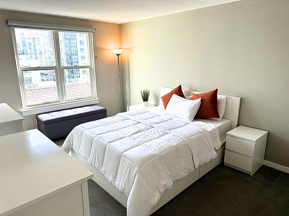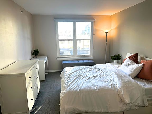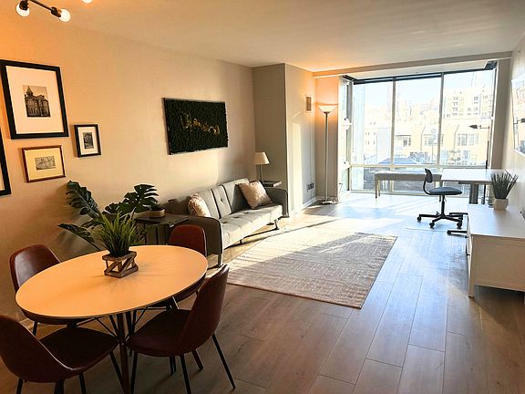 Spectacular condo with stunning views in a full service building! Furnished. Fully equipped fitness center, 24 hour doorman security, Jacuzzi/hot tub, sauna, shared outdoor lanai, near key shuttle stops also one block from the 2 & 3 lines, two blocks from 38 line and 3 blocks to California cable car line. Walk to Polk, Hayes Valley, Japan Town, Cow Hollow/ Marina, and Fillmore right from your front door! Condo Details - Furnished and move-in ready. Also available without furniture - One Bedroom, Great Flow and Open Floor Plan - 7th floor home with spectacular views - Floor to Ceilings Windows with unobstructed views of downtown SF (east facing) - Kitchen is loaded with garbage disposal, dishwasher, stovetop/oven, microwave, lots of cabinet space - Walk in Closet + wall of closets in entry way - High Speed Internet Included - In Unit Laundry - Near key shuttle stops, one block from the 2, 3, 4 lines two blocks from 38 line and 3 blocks to California cable car line Building Amenities - 24 hour security and door man building - Fully equipped fitness center, Jacuzzi/hot tub & Sauna - 3rd Floor shared lanai with tables and lounge chairs - Parking available at $200/month. Parking in building, underground, automatic door and dedicated space. - Modern building, concrete floor/ceilings, 164 units Neighborhoods & Parks - Neighborhoods: Walking distance to Polk Street, Hayes Valley, Cow Hollow Fillmore and Japan Town - Parks: Lafayette Park, Japan Town Plaza Park, Jefferson Square Park Transportation - Near key shuttle stops, one block from the 2 & 3 lines two blocks from 38 line and 3 blocks to California cable car line Grocery - Grocery: Walk to Whole Foods (on California/Franklin); Trader Joes (on California/Hyde) Lease Details: - High Speed Wireless Internet Included in Rent - Water and Garbage Included in Rent - No Smoking - Parking available at $200/month Furnished. Garage parking available