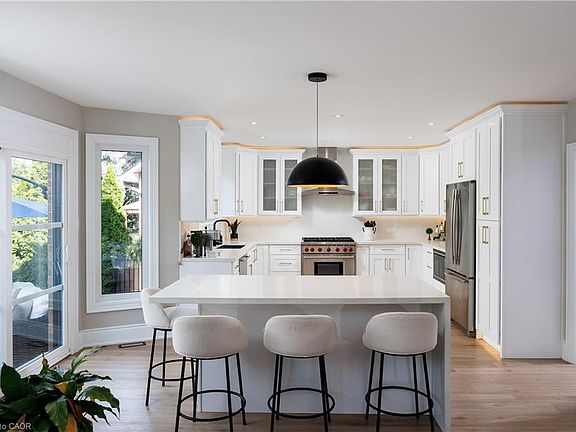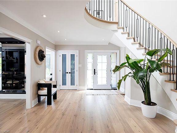 Experience the ultimate in luxury living, style, & location in this extensively renovated 4+1-bedroom, 4.5-bathroom executive home in the prestigious Fairway Hills community, bordering the world-renowned Glen Abbey Golf Course. The backyard is a private resort-style haven, featuring an inground pool, relaxing hot tub, & expansive stamped concrete patios—perfect for summer entertaining & outdoor living. Inside, the main & upper levels underwent a complete designer transformation in August 2024, with walls removed to create a sophisticated, open layout. Every detail exudes elegance with new bathrooms, white oak hardwood floors, crown mouldings, a custom staircase, designer lighting, smooth ceilings, baseboards, trim, interior & exterior doors, windows, & a show-stopping chef’s kitchen. The roof, pool liner, & cover were also newly replaced for peace of mind. Enjoy effortless entertaining in the spacious living room with an inviting fireplace, the formal dining room with custom built-ins, & the oversized family room with a fireplace. The stunning custom kitchen boasts sleek cabinetry with accent lighting, quartz countertops, a large island with a breakfast bar, high-end appliances, including a 6-burner Wolf gas range, & a walkout to your backyard retreat. Upstairs, discover 4 bright bedrooms & 3 spa-inspired bathrooms, including a serene primary suite with custom cabinetry & a luxurious 5-piece ensuite featuring a sculpted soaker tub & oversized glass shower. The fully finished lower level offers endless possibilities with a sprawling recreation room, fireplace, wet bar, games area, a private guest suite & a luxurious full bath. Start your dream life in Glen Abbey, a highly coveted Oakville community celebrated for its scenic trails, top-rated schools, & unbeatable proximity to restaurants, shopping, hospital & major highways. Fairway Hills Association fee $1000/year