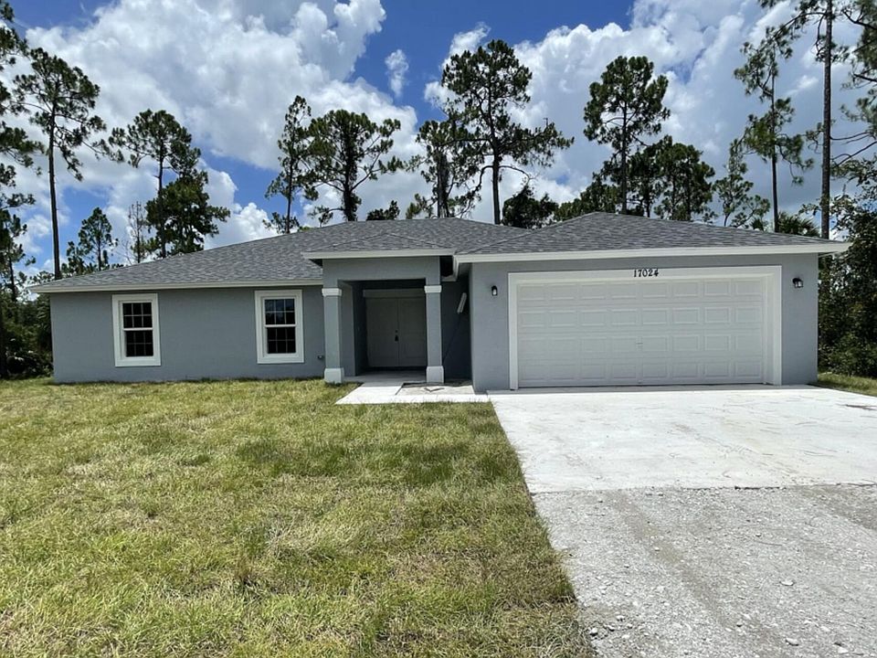 New Home under construction estimated completion by December 2025. Open split floor plan layout.Double door entry and large covered patio.