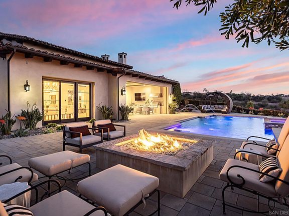 Driving along your private, picturesque driveway, you arrive at a truly amazing estate. Presenting an ALL NEW, modern single-level custom home that offers unrivaled privacy and luxury in every detail. Designed with the finest materials and cutting-edge technology, this home is crafted to meet the highest expectations of the most discerning buyers. Upon entry, you’ll be captivated by exquisite designer touches throughout. Expansive corner pocket doors open to a spacious heated covered patio featuring an elegant fireplace and barbecue, along with a stunning pool and spa. This seamless blend of indoor and outdoor living ensures total privacy and a tranquil atmosphere. Relish breathtaking sunsets from your private fire pit sanctuary. The grand great room flows effortlessly into a gourmet kitchen, complete with beautiful quartz countertops and top-of-the-line appliances – perfect for both entertaining and everyday living. The generous primary suite offers a serene retreat, boasting his-and-her walk-in closets. Located in the highly sought-after Santaluz community, this home provides a friendly, family-oriented environment with endless opportunities for relaxation and recreation in its private open spaces. Residents also have access to a world-class, 18-hole golf course designed by the renowned Rees Jones. This extraordinary custom home combines luxury, comfort, privacy, and spectacular views – a rare find in today’s market. Don’t miss your chance to own a piece of paradise in Santaluz!