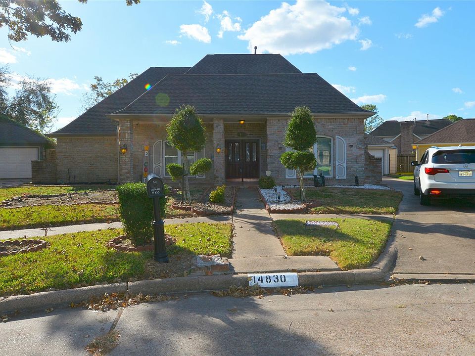 Welcome to this spacious 4 bed, 2.5 baths home in a serene neighborhood. Enjoy hardwood and tile flooring throughout. Spacious kitchen offers granite countertops, and plenty of cabinets. Stainless steel appliances complete the modern kitchen. Double pane windows, elegant lighting fixtures, and a double-sided fireplace in the living and family room add charm. The large backyard with a 2 covered patio is perfect for gatherings. Huge Primary room has 2 walking closet and custom wooden cabinets. Study is converted to the custom primary closet. Conveniently located near shopping centers and major highways for easy commuting. Don't miss out on this gem at 14830 La Rana!