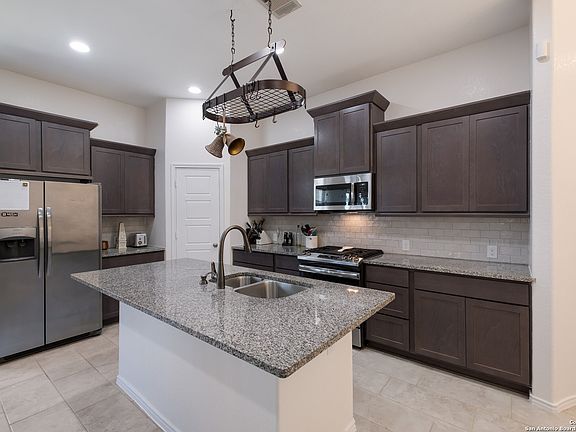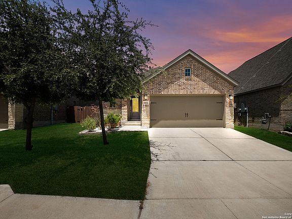Welcome to the best-priced luxury Perry Home in the highly sought-after Kallison Ranch community! This beautifully maintained, move-in-ready property offers exceptional value and premium features, all just steps away from top-rated schools and major conveniences. This home is zoned for and walking distance to the football powerhouse, Harlan High School, and just a short walk to Henderson Elementary. Your daily routine just got easier and more enjoyable! Inside, you'll find tile flooring throughout, including in the spacious primary bedroom for a clean, modern look and easy maintenance. The freshly painted interior provides a crisp, updated feel, ready for your personal touch. Eco-conscious and energy-efficient, this home comes with fully paid-off solar panels at closing and a tankless water heater, helping you save on monthly utilities from day one. Location is key-this home offers quick access to Highway 211, while the ongoing Culebra Road expansion promises smoother commutes with minimal traffic soon. Plus, a brand-new H-E-B is under construction just 5 minutes away, adding even more convenience to your daily life. Don't miss this rare opportunity to own a luxury home in a top-tier neighborhood at an incredible value! Schedule your showing today