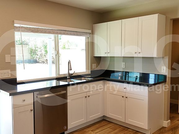 Covered patioInviting kitchenFenced backyardPrivate primary suiteCarpet and tile flooring
