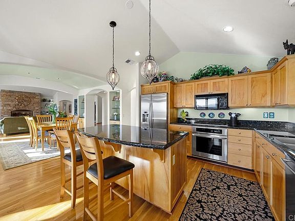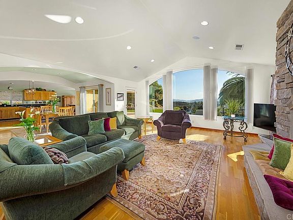 Welcome to this exquisite single-story residence nestled within the prestigious gated community of Jamul Highlands. Step inside to discover an inviting open floor plan adorned with high ceilings and expansive windows, bathing the space in natural light and offering breathtaking views of the surrounding landscape. The updated kitchen is a culinary masterpiece, featuring a spacious island, sleek stainless steel appliances, and ample storage, ideal for both casual dining and entertaining guests. The large primary bedroom retreat awaits, boasting a luxurious ensuite bathroom and serene views of the tranquil surroundings. A dedicated bourbon room adds a touch of sophistication and charm, perfect for unwinding after a long day. Outside, the meticulously landscaped grounds provide a sanctuary for relaxation and entertainment, with shaded seating areas, a soothing water feature, and a cozy fire pit, creating an ambiance of tranquility and warmth. Revel in the beauty of the outdoors while enjoying the convenience of a 3-car garage and paid solar panels ensuring sustainability and efficiency. With its unmatched blend of elegance, comfort, and modern amenities, this property offers a rare opportunity to experience luxury living at its finest in a coveted gated community.