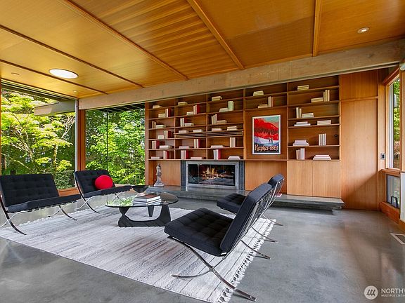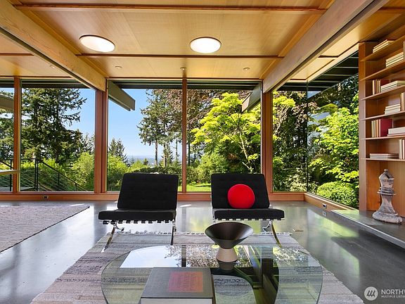 A rare Mid-Century Modern jewel atop the highest point in the coveted Hilltop community. This architectural stunner was designed by John (Jack) Morse and was his private residence for over 25 years. Showcasing iconic Modernism, it features hand-selected old-growth timber, polished concrete floors and walls of glass that capture sweeping views of Mt. Baker. Exquisite lines and refined detailing celebrate both the beauty of the natural materials and the integrity of the design. Enveloped by 1.34 lush acres bordered by a greenbelt, it offers the ultimate luxury of privacy. Updated systems and A/C. Only 2 owners, 1st time on the market in nearly 50 years. Hilltop Residents enjoy a shared artisanal well, pool, trails, park, and sport court.
