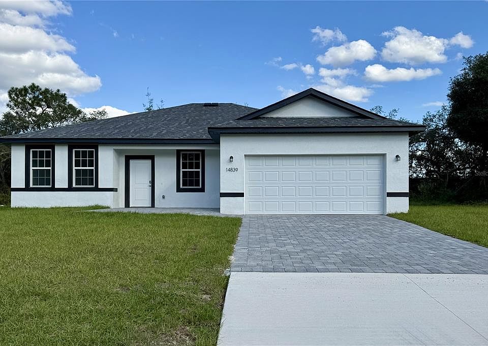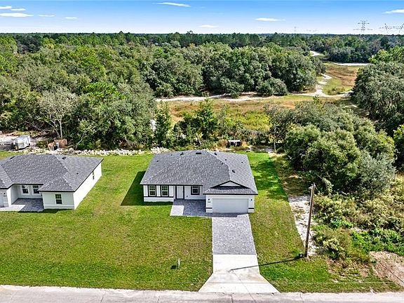 Bring the family to this Brand New 4 bedroom/3 bath Home in Marion Oaks with NO HOA! High & dry. No Flood Zone. If you can't find a Mother-in-law suite, Here's the next best- AN ENSUITE W/ ITS OWN BATH & HUGH WALK IN CLOSET. Great for a home office! This Open Floor Plan offers a Covered FRONT Porch and Covered Lanai off the kitchen. Tall ceilings throughout ARE 9”4”. Tile throughout! No carpet! Builder Warranty. Ask about a FHA a 4.99 PERCENT INTEREST RATE , 30 year fixed rate OR Lender Paid Closing Costs. Call agent for further details. This home is eligible USDA, VA, FHA!. No back neighbors ever-county owned property behind! PAVER BRICK PATIO & DRIVEWAY. New Elementary school is complete and New High School 2026. Close to Shopping, Medical, I75 to Orlando, Restaurants & More... Marion Oaks amenities include a community center with a library, auditorium, and recreational facilities like a splash pad, fitness center, and sports courts for basketball, tennis, pickleball, and volleyball. Outdoor amenities feature parks, playgrounds, and walking/biking trails, and the community also provides convenient access to shopping and dining, with nature areas like the Cross Florida Greenway nearby. SCHEDULE YOUR TOUR TODAY!