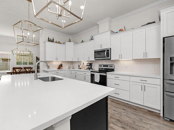 Tucked away at the end of a quiet cul-de-sac, this nearly new (just 1.5 years young!) 5-bedroom, 3-bathroom home has the perfect blend of comfort, style, and coastal convenience.Inside, you'll love the bright, airy feel--natural light pours through the windows, highlighting the open concept design. The huge kitchen is a dream with plenty of counter space, a breakfast bar for quick bites, and a dining area that's ready for everything from casual taco nights to holiday feasts.The flexible tri-split floor plan gives everyone their own space, plus a flex room that's perfect as a home office, gym, or bedroom.Step outside to the 11x17 covered back porch, where morning coffee or evening cookouts are made better by the peaceful backyard setting.And when it's time to get out and about- you're just minutes from Pensacola Beach, Navarre Beach, shopping, dining, and all that Gulf Breeze has to offer.