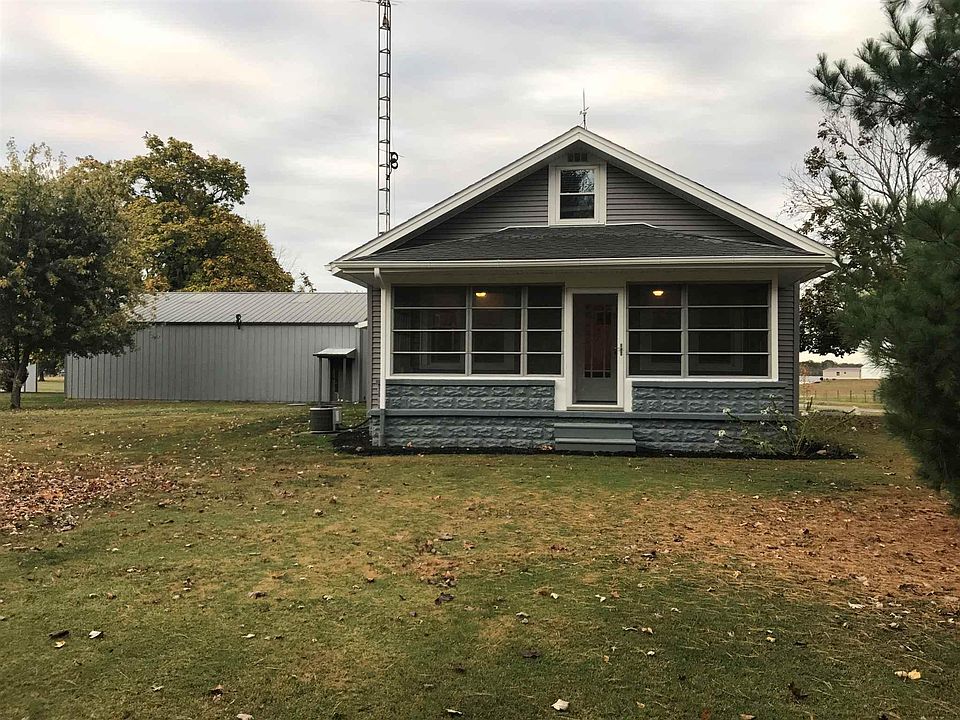 Edge of town! This 3 bedroom bungalow is situated on a nice corner acre lot & features new flooring, custom kitchen cabinetry with appliances to stay, main level laundry washer/dryer included, remodeled bathroom, partial basement, 1.5 car carport, new siding, 36x45 pole bldg with concrete floor, electric & woodburning stove.