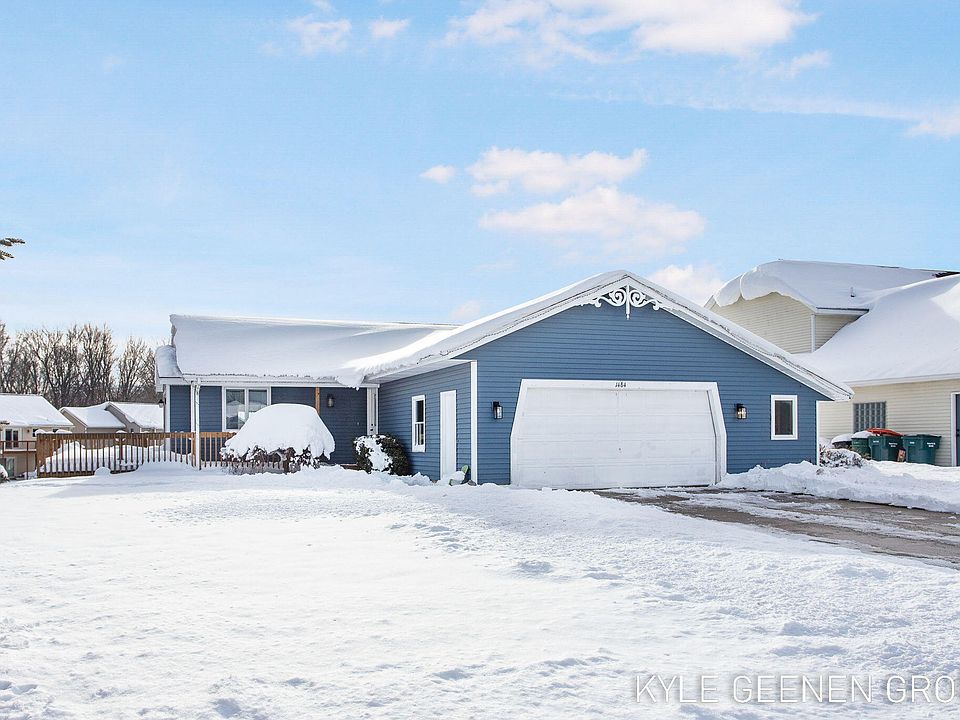 Welcome to this waterfront home in Georgetown Township. Located on Berger Lake, this home features 73 feet of private water frontage, a sand beach, and oversized, wrap-around deck to enjoy the view. Inside, you'll find 2 bedrooms and a full bathroom on the main floor along with a large living room with fireplace and vaulted ceilings. The lower level features an open living space with a wet bar, 2 bedrooms and full bathroom, and plenty of storage space. Enjoy easy access to the beach through the lower level walk out and patio. Schedule your tour today!