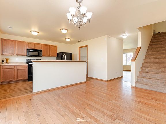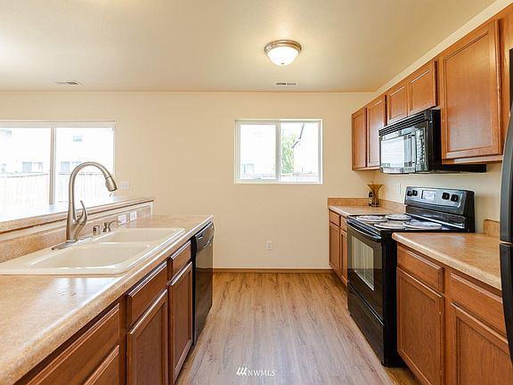 MASSIVE 4-bedroom home nestled in the highly desired Tahoma Terra Cmty. You don't have to worry much about driving as this property is centrally located in the heart of Yelm. Within walking distance to Yelm high school, restaurants, & various parks. This home features a large living rm that boasts a gas fireplace to set the ambiance when entertaining, a charming chandelier, spacious galley style kitchen, a picture frame archway, walkin pantry, & new flat cook stovetop. Offering a HUGE master suite that will make getting out of bed that much harder, w/ his & her closets& a private full master bathrm. The exterior of the home offers a 2-car garage & fully fenced backyrd w/ side access. Remarkably close commute to JBLM, Lacey, Olympia, & I-5
