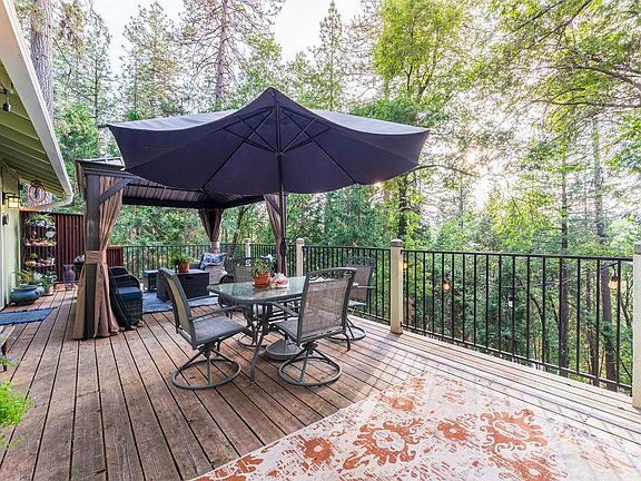As the leaves turn and crisp fall days arrive, imagine gathering in this beautifully maintained 4-bed, 3-bath home just seven minutes from town. Hardwood floors and cathedral ceilings create a warm, inviting living room, centered around a wood stove on a river rock hearthperfect for cozy nights with family and friends. The spacious kitchen with granite counters includes a large dining area, perfect for family meals and holiday gatherings. French doors open to a peaceful back deck, with primary suite access for seamless indoor-outdoor living. Downstairs, a flexible space with private bed/bath, jetted tub, and separate entrance welcomes guests, multigenerational living, or rental use. Updates include newer roof (5+ yrs), HVAC with new compressor, tankless water heater, gutter guards, and septic pumped Oct 2024. Two-car garage, nearby trails, and golf course complete the lifestyle. A home to live, gather, and make lasting memories.