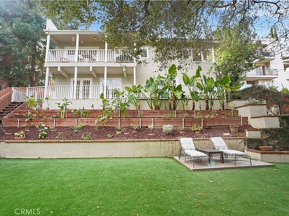 Enchanting South of the Blvd home nestled in the picturesque hills of Sherman Oaks. This secluded retreat offers an opportunity to experience an infusion of mid-century charm and Hollywood glamour. Sprawling across a 5,647 sq ft lot with 1895 sq ft of living space, this home is the epitome of privacy and tranquility. Glide down the stairs from the street level to your front door. Wood floors add warmth and character throughout the home, while romantic natural light floods every corner through plentiful windows. The heart of the home is the kitchen, featuring vast windows, concrete countertops, walk in pantry and a center island opening to the dining space. It's easy to imagine creating culinary delights while enjoying the treetop views as guests mingle and chat. Step into the adjacent living room where a cozy brick fireplace awaits. This is the ideal backdrop of captivating conversations, movie nights or quiet introspective work at the built in desk nook. Glass French doors lead out to the upper deck, perfect for alfresco dining, a cup of morning tea or soaking in the morning sun. Also on this level is the secondary full bath featuring detailed original tiles, dual sinks and a large glass enclosed shower. Downstairs two equally spacious bedrooms provide private sanctuaries for rest and relaxation. Each room has generous window placement, direct access to the secondary deck and ample closets are highlighted with organized systems. The main suite offers an en suite Bath with a cast iron soaking tub and chandelier blending classic hollywood glamour with the modern elegance of a large luxurious walk in shower and access to the spacious laundry room. The laundry is large enough to become a 3rd bath if desired. Two exterior decks, a terraced garden, and usable flat entertainment space designed with a platform deck and artificial turf create that perfect California Outdoor Space. You'll have your pick between planning garden parties or soaking in nature, fresh air and quiet seclusion. The detached 2 car garage has a finished interior, window and electricity, and sits at street level. This property beckons those who value peace and privacy without sacrificing proximity to vibrant city life. A haven away from the bustle and noise, yet close enough to enjoy trendy boutiques, eateries or a jaunt into the city for sports or cultural experiences. This harmonious blend of seclusion, style, and convenience is truly a unique find. Your personal LA oasis awaits!