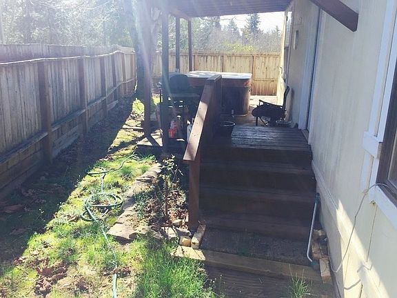 SOLD Difficult to find a Doublewide manufactured home in Oregon's premier all age community that is below $30,000. Outside this home offers gorgeous sunsets from the abundance of multilevel outside decking of which part of it is covered. The yard is completely fenced and you have covered parking and a storage shed and grassy areas both behind the home and in front of the home. This home is almost 1000 ft. and has nice sized rooms. The bathroom features a garden tub shower combination. The seller is leaving all the kitchen appliances and might even be willing to leave the washer and dryer. Combine this with the reasonable space rent of $560 a month which includes both your cable (100+ channels) and sewer with water running an average of $10 (couple) to $30 (Family) per month. Siding appears to be in good repair and new roof was installed approximately 2007.