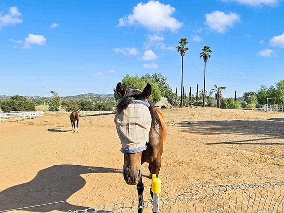 Priced below value with appraisal on hand! Your home comes with equity! Welcome to a horse lover's paradise nestled in the picturesque landscapes of Valley Center. This exceptional property offers a unique blend of rustic charm, luxurious amenities, and top-notch equestrian facilities, making it an idyllic retreat for both horses and their owners. As you approach this magnificent estate, you are greeted by a half-moon driveway lined with beautiful succulents and trees, setting the tone for the elegance that awaits you inside and out. The property encompasses an impressive expanse of 2.5 acres, providing ample space for equestrian pursuits, outdoor recreation, and endless possibilities. The home exudes a timeless charm with its traditional ranch-style architecture and modern amenities. Boasting 3bedroom with an optional 4th/home office, 2bathrooms, and spacious living areas, this home offers the perfect balance of comfort and style. Large windows throughout the house frame breathtaking views of the surrounding landscape, allowing natural light to flood the interior and create a warm and inviting atmosphere. Beaitufl granite counter tops in the kitchen, new flooring throughout, and brand new bathrooms. Run the AC all summer long as the home is all electric and has its own fully owned solar farm. Enjoy the amazing views of Palomar Mountain 24/7 from your completely covered patio. Enjoy hosting all your family events on the concrete pad, with electricity and LED lighting. For those with a green thumb, enjoy year round gardening in your 40’+ greenhouse. The true highlight of this property lies in its equestrian facilities. Thoughtfully designed to cater to the needs of both horses and riders, the equestrian area offers the following features well-maintained horse pens, providing a safe and secure space for horses to roam and graze. An expansive riding arena, complete with premium footing, offers the ideal setting for training and leisurely rides. Whether you're an experienced equestrian or just starting your riding journey, this arena will cater to all your needs. The horse stalls offer the utmost comfort and care for your equine companions. Crafted with attention to detail, the stalls ensure a cozy and secure space for horses to rest and rejuvenate. Schedule a private showing today!