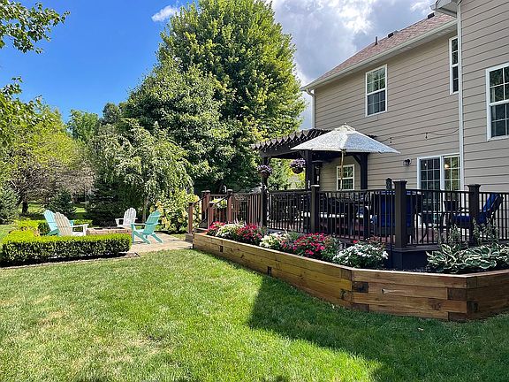 Welcome to this spacious two-story home featuring 4 bedrooms, 4.5 baths (2 are en suite), fully finished basement and 3 car garage. The basement includes a bonus room currently used as a bedroom, providing extra flexibility for guests, or a home gym. Recent updates include a full master bathroom remodel (2023), a new roof (2020), and new heating and air conditioning units (2022), offering comfort and peace of mind for years to come. Enjoy outdoor living on the large Trex deck overlooking a stamped-concrete patio and cozy fire pit area — perfect for relaxing evenings or gatherings with friends. The home also includes an irrigation system. Located in a desirable neighborhood with community pool access and your own deeded boat dock, this home offers both comfort and convenience for lake living at its best.