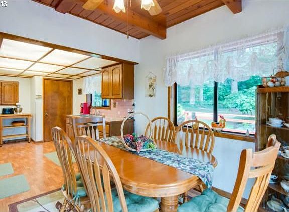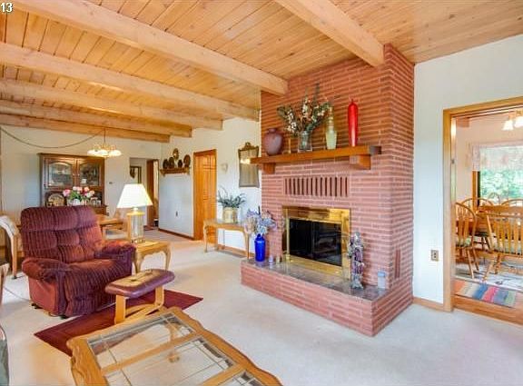 Mt Hood view, Park like setting w/trees, nice floor plan, 4bdrm, 2ba, large living room w/gas fireplace, nook area w/slider to large deck, formal dining area, family room w/fireplace, patio, utility room w/storage area, hardwood floors under carpet on main floor, newer windows, over sized 1 car garage w/work bench, tool shed, sprinkler system, water feature, RV parking.