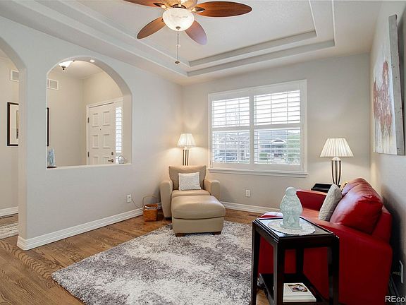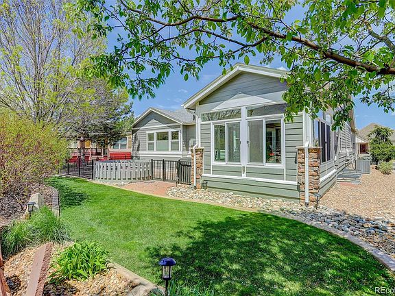 The search for your next home is over - this impeccably maintained ranch home has it all and is located in the desirable Heritage Todd Creek 55+ community. Charming is the best description of this lovely home which is situated on a large lot with mature trees for added privacy. The main floor living, dining and kitchen areas are accented by rich wood flooring; while the bedrooms and den have updated carpeting. An abundance of cherry cabinets and a pantry offer a great deal of storage and the granite countertops and SS appliances make it a chef's delight. The kitchen and living area are open making the great room the perfect gathering spot for any occasion. There is a formal dining room for holidays and family gatherings, plus a breakfast nook off the kitchen for daily use. A large Sunroom addition extends the living area to the outside and gives the perfect access to the deck and fire pit which includes a built-in sitting area. The primary bedroom is complimented by newer carpeting, and a super 5 piece bath which is complete with dual vanities and a walk-in closet. A secondary bedroom and full bath are ideally located and perfect for out of town guests. If you work from home, you will be deligted with the extra large den/office Inside and out, this home has received an abundance of love and care. The front yard was recently relandscaped offering low cost zero-scaping and an upgraded Lenox furnace & Ac unit was installed in 2023! The house is ready for you to move right in and the community offers an abundance of activities for you to enjoy. Living in HTC is a ideal and the perfect place to relax and enjoy life.