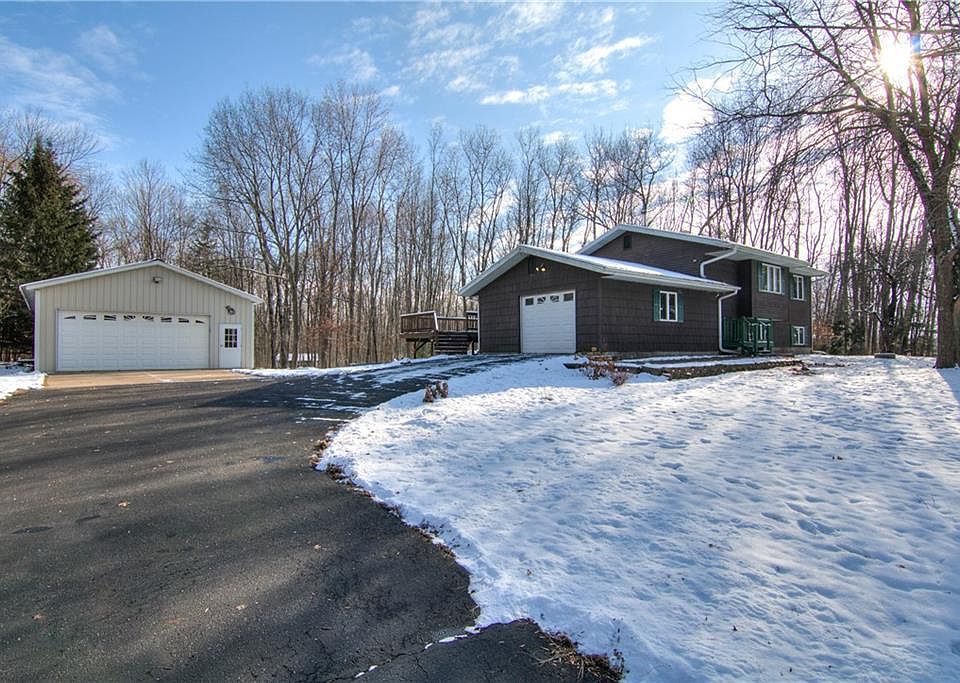Private, rural, location near Popple Lake with mature wooded lot! You'll love the fresh country feel, nice home, HUGE back deck, proximity to boat landing & outdoor fun! Home boasts rustic hickory kitchen w/slate floors, quartz countertops, open concept living, woodstove, large bath w/dual sinks, shower & soaking tub! The lower level offers two more bedrooms, wood burning fireplace, large family room & laundry/utility room w/walk-out. The deck & gazebo offer great entertaining space outdoors, with extra landscaping under pool that would make a fab firepit area if wanted! Annnnnd, who doesn't love TWO garages?? (26x40 detached garage, plus attached 22x22 garage) Only 15 minutes to downtown Chippewa Falls & major highways, schedule YOUR showing TODAY!