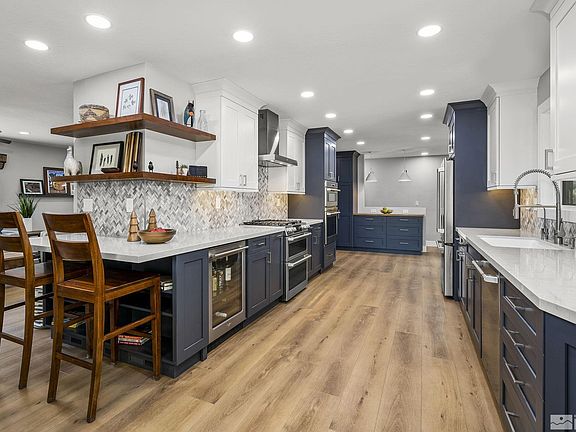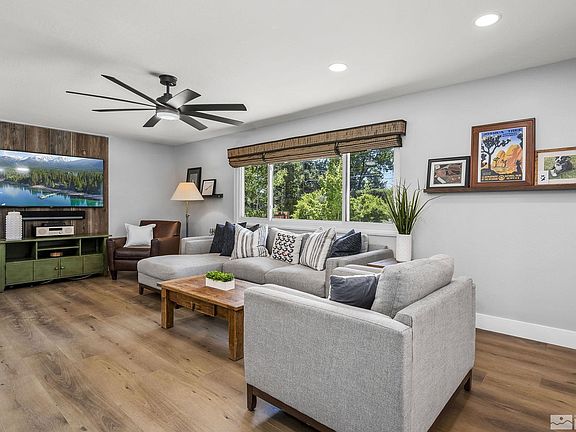 Updated Mid Century Modern Home! This home is special! 4 bedroom, 2 bath and attached 2 car garage that sits on a private 1.33 acres. Centrally located in South Reno, convenient to schools, shopping, airport and all the mid-towns events and restaurants. Fabulous custom kitchen with beautiful countertops, cabinets and appliances. Family Room/Game Room, Bar Area all have been updated to provide a a fun room for entertainment, with easy access to the stunning backyard. Backyard offers, a large grass area, garden with fruit trees, and patio for BBQ and enjoying the serenity of this private yard. Newer luxury vinyl flooring, baseboard and paint finish the home for clean easy living. This is a must see! Seller upgrades include: electrical panel, lighting, windows, fully fenced redwood, water heater, A/C, and more.