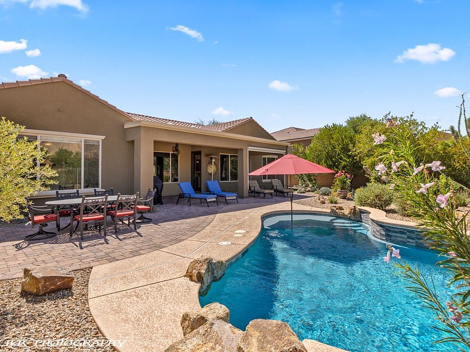 Elegant home in gated community with pool and 3 bedrooms. Ask about buyer's awesome incentive being offered. Escape to luxury living in this stunning Sun City Mesquite home! This elegant residence, nestled in a sought-after gated community. Situated on a .25 acre homesite & backing a pristine fairway of the Conestoga Golf Course, the home boasts breathtaking views, distinctive landscaping & private swimming pool and a climate controlled 3 car garage. The expansive patio, complete with power shades, offers the perfect setting for entertaining or unwinding while taking in the tranquil golf course and desert views. The kitchen is gorgeous featuring an oversized, custom-built island full of cabinets, two ovens, single basin sink and dual refrigerators (one commercial-sized). This 3-bedroom home (2 owner's suites) offers the ultimate in privacy with each bedroom having its own ensuite bathroom. The large, versatile den/office is a bonus, perfect for a game room or media center. Additional highlights include crown molding, costly solar tubes, a custom-built living room entertainment center, a large laundry room with a utility sink and plenty of storage. . For youtube video, copy past this link into your browser: https://youtu.be/eChpB3dt