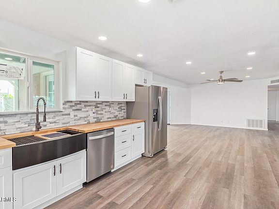 Great remodel in NO HOA! Bring your trailers, RV'S cars Airbnb buyers. Perfect opportunity to move in and just enjoy! Turn key ready with a nice backyard and huge private pool in the backyard with a corner lot so lots of backyard space outside the pool area!! SINGLE STORY makes this home the perfect home for families or folks of any age to enjoy! Kitchen is so unique offering lots of storage, really cool butcher block counters! Undermount sink, matching backsplash, stainless steel appliances, soft close new cabinets, adorable barn door for huge pantry in kitchen. Huge living room open floor plan. This house shows so great with light and bright features. Flooring is all plank flooring new and looks great!! All bedrooms are large in size. Ceiling fans throughout. Both bathrooms are amazing!