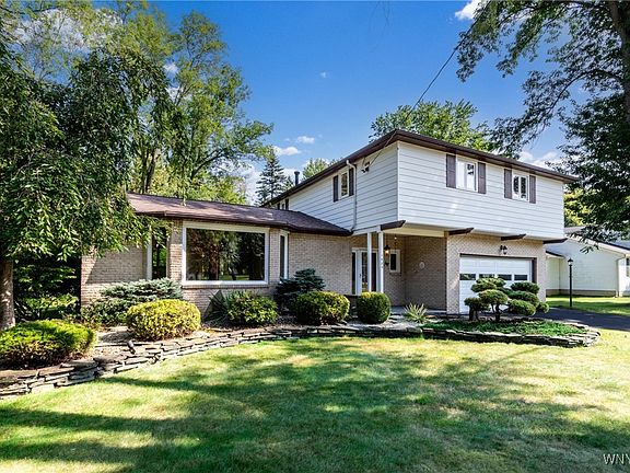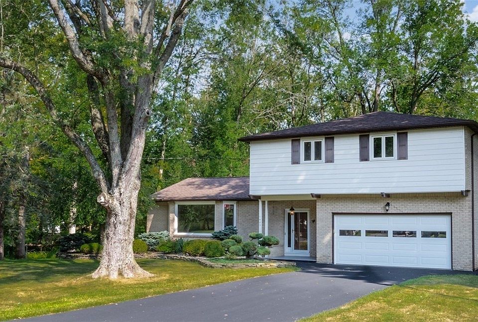 Nestled on 2.8 acres, this one-owner custom quality built home has been lovingly maintained & features four bedrooms & 2.5 baths. The inviting foyer features slate flooring & opens to the spacious living room & dining room with cathedral ceilings. The living room has a large bay window. Eat-in kitchen has ceramic flooring & beautiful cabinetry with pull out drawers & built-in spice cabinet. The kitchen also includes refrigerator, cook-top, built-in oven, microwave & dishwasher. Family room has ceramic flooring, gas fireplace, coffee bar & sliding doors to year round Florida room with gas stove, cathedral wood planked ceiling & leads to a stamped concrete patio & shed that backs up to wooded grounds. Primary suite has wall of closets & full bath with ceramic flooring. Main bath has ceramic flooring & updated vanity with solid surface countertop. Multi zoned heat. Mini splits throughout house to keep it nice & cool. Natural woodwork. Hardwood flooring under most carpets. Maintenance free exterior that is mostly brick. Nicely landscaped grounds. Finished attached garage with water & electric. Updates: Circuit breakers, disposal '24. Shed roof '23. Driveway '22. Windows '20. Roof '19.