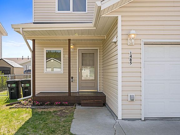 Welcome to 1485 Joyce Drive — a beautifully maintained zero-lot-line home located in the highly desirable Shannon Park neighborhood of Fairbanks. This is the left-side unit of a well-kept duplex-style property, where you own your half outright, offering the perfect blend of single-family living with low-maintenance convenience. From the moment you pull into the clean, pristine driveway, it’s clear this home has been lovingly cared for. Step onto the inviting front porch and through the front door into a warm, functional layout designed for everyday living. The kitchen greets you first, complete with a cozy dining nook that’s perfect for morning coffee or casual dinners. Just past the kitchen, you'll find access to the one-car garage—neatly housing the boiler and hot water heater—as well as a convenient pantry and under-the-stairs storage space. The open living room extends to the backyard through a glass door, where a brand-new deck awaits for outdoor gatherings. The fully fenced yard offers privacy between neighbors with a chain-link enclosure and a dedicated privacy divider, plus a small shed and flower beds ready for your personal touch. A half bath rounds out the main level, keeping guest convenience in mind. Upstairs, you'll discover three bedrooms and a full bathroom. The primary bedroom sits to the left, offering generous space and a walk-in closet. Two additional bedrooms feature standard closets and charming, color-coordinated details. The upstairs bathroom includes laundry hookups for added convenience, and plush carpeting creates a soft, cozy atmosphere throughout the second floor. Beyond the home itself, this location checks every box for comfort and accessibility. City water and sewer eliminate rural headaches, and high-speed GCI internet is readily available. Commutes are quick and easy — you’re just minutes from Fort Wainwright’s Trainer Gate, a short drive down the Richardson to Eielson AFB, and directly across the street from shopping conveniences like Home Depot, Lowe’s, and Walmart. Built on a solid insulated block foundation with 2x6 construction, this home offers quality, care, and peace of mind with every detail. With 1,406 square feet of thoughtfully designed living space, plus an additional nearly 300-square-foot garage, 1485 Joyce Drive offers an incredible opportunity for anyone looking to step into homeownership with confidence. Virtual tours and video walkthroughs are available online — check out the Zillow tour or watch the full walkthrough on YouTube, both linked in the MLS.