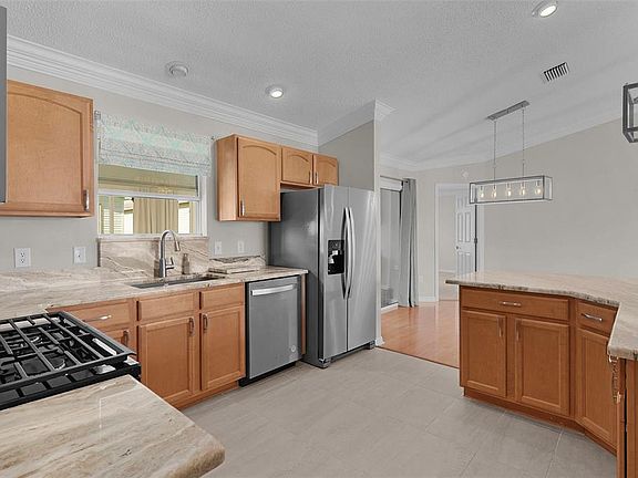 One or more photo(s) has been virtually staged. NEW ROOF COMING & NO INCREASE IN PRICE! TIME TO COME TAKE A LOOK AT THIS BEAUTIFUL HOME WITH A FLORIDA ROOM!! A/C 2024! No "kissing Lania's" here! This lovely home is provided privacy, but not with a wall or a swamp! Your new home backs up to a patio villa, in which the lanai is at the FRONT of the home (meaning there is not a lanai backing to yours)! This gives YOU the PRIVACY you are desiring! “Between the 66’s!” Five miles or less to Lake Sumter Landing and Brownwood where you can enjoy year-round live music, dancing, shopping & dining! The Village of Duval is just around the corner from the Seabreeze Regional Recreation Center where residents can choose from a wide range of activities such as cards, ping-pong, line dancing, “tennis-volleyball”, bocce, pickleball & more! The sports pool is a high attraction for lap swims, water volleyball & aerobics. Here you also have a weight room (additional fee)! Vaulted ceilings are a MUST and this Beautiful Austin Model accentuates this feature with extra wide crown molding! Carefully chosen granite countertop and undermount sink in the kitchen bring together the cabinet color with the tile flooring which make this area a focal point of the home. Real hardwood floors in the living room help to make this house feel just like HOME! The screen lanai is now a Florida room with modern, upgraded cabinets to make this room perfect for an office space. The added sq ft is so versatile! A cabinet-style “murphy bed” & a pull-out couch could be the perfect furniture choices to make this Florida room ideal for hosting guests, while still allowing everyday use for relaxation, exercise, or crafts. The primary bathroom has been updated with beautiful new tile in the shower and the floor. Upgraded bathroom counters display beautiful Cambria Quartz! Thermostat is programmable by a phone app - so no worries if you left the A/C on 65 when you left for vacation! There's an APP for THAT! The Villages is an active adult community with over 3000 activities and an abundance of pools, recreation centers and golf courses. Executive courses are included in your amenity fee, whereas Championship Courses can be chosen at an additional cost. Beaches can be enjoyed on a day trip on the Gulf side approximately 1 hour and 15 min away. Or enjoy the Atlantic side, which is closer to an hour and a half. Enjoy visiting Disney with just about an hour or so away! Bond balance $9694.08 (Yearly maintenance portion $585.85 & bond portion $1213.29) ROOF 2025!A/C 2024 - Information deemed reliable but should be independently verified.