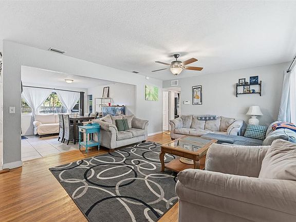 Welcome to this beautifully maintained 3-bedroom, 2-bath home with a 1-car garage and extra-long driveway, perfectly located in a non-flood zone area of Clearwater. This residence offers peace of mind, major updates, and exceptional energy efficiency. The home features paid-off solar panels (installed 2022), keeping electric bills around $37 in the winter and $150 in the summer. Hurricane impact windows (valued at over $16,000) with warranties on both glass and screens provide durability and protection. Inside, the open and spacious kitchen that overlooks the backyard and easy access from the garage is thoughtfully upgraded with USB and Type-C outlets, stainless steel appliances, granite stone counters, soft close cabinets and a garbage disposal. The spacious floor plan includes a large living room, a sunken dining area, and a split-bedroom layout for added privacy. Major systems are all newer: Roof (2019), AC (2019), and Water Heater (2025). Step outside to a fully fenced oversized backyard with room to add a pool and a brick patio area perfect for an outdoor fireplace or entertaining space. There are no HOA fees, no CDD fees, and the property has not been affected by any previous storms. Conveniently located near Clearwater’s beautiful beaches, shopping, and dining, this home is priced to sell fast and ready for its new owner.