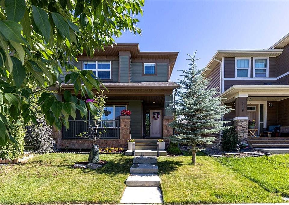 WELCOME to this BRIGHT, WELL MAINTAINED, 3-bedroom, 3.5-bathroom DUPLEX offering over 2,100 square feet of DEVELOPED LIVING SPACE with FULLY FINISHED BASEMENT and DOUBLE GARAGE located in the community of LEGACY. As you enter the home from the COVERED FRONT PORCH, you are greeted by an OPEN CONCEPT LAYOUT featuring a welcoming living room, dining room, and kitchen with GRANITE COUNTERTOPS, KITCHEN ISLAND, STAINLESS STEEL APPLIANCES, including an SMART SAMSUNG REFRIGERATOR. Upstairs, retreat to a SPACIOUS PRIMARY BEDROOM featuring a WALK-IN CLOSET and a 4-PIECE ENSUITE, complemented by two ADDITIONAL GOOD-SIZED BEDROOMS, MAIN 4 PIECE BATHROOM, and convenient laundry. The FULLY DEVELOPED BASEMENT (built by the builder) adds even more living space with a FOURTH BEDROOM, 4-PIECE BATHROOM, LARGE WALK-IN CLOSET/STORAGE ROOM, RECREATION ROOM, and a utility room. ADDITIONAL HOME FEATURES include: ELEGANT GROHE FAUCETS in kitchen and all bathrooms, comfort upgrades including INDEPENDANT SMART THERMOSTATS on each floor, CEILING FAN in PRIMARY BEDROOM, RADON MITIGATION SYSTEM in the basement, SOME NEWLY REPLACED CARPETS, RECENTLY CLEANED AND SERVICED FURNACE (July 2025) for efficiency and safety. The FULLY-FENCED for privacy, LANDSCAPED BACK YARD, includes a DECK —> perfect for outdoor entertaining or relaxing, ENCLOSED OUTSIDE STORAGE for garden tools and seasonal items between garages. LEGACY is a VIBRANT FAMILY-ORIENTATED COMMUNITY complete with schools, parks, playgrounds, walking paths, ponds, and nearby shopping. DON'T MISS THE OPPORTUNITY to make this beautiful duplex your new home. BOOK A SHOWING TODAY!