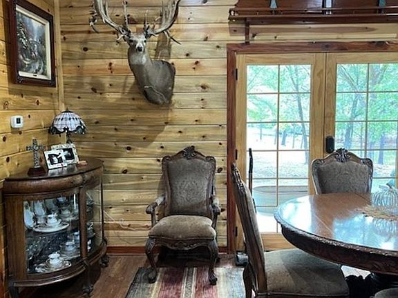 Gorgeous 88.70 acre high fenced ranch with stone & iron electric gated entry and great road frontage. Lodge style home retreat awaits your family and is a lovely, rustic home with open living and kitchen and abundant light thru-out! Upstairs are 2 bedrooms and bath. First level has half bath, utility and large garage space plus covered parking area. This amazing location on Sam Page Road makes it a very rare find! Property backs up to Turtle Creek. Live creek flows thru it with several ponds and beautiful mature trees. Large value in whitetail deer purchased thru High Roller Genetics. This would be an amazing development, venue, business, and several homesites with great view! Whatever you can imagine, it's here!