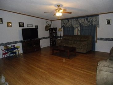 This beautiful piece of country paradise is situated on 14.81 acres. The living room has a spectacular stone fireplace, laminate flooring, and vaulted ceilings. The laminate floors carry over into the spacious kitchen which has a VERY LARGE pantry which would please any chef. The master suite can accomodate a king size bed, has a large closets, a master bath that has his and her vanities and a garden tub. Outside you will find an above ground pool with lighted deck, a large workshop, and a barn.