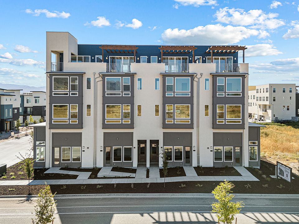 This unique townhome is designed with flexibility and modern convenience. On the main level enjoy a flex space with bath and separate heating/cooling system. Perfect as a private separate office from the rest of the home and is even permitted for commercial use. The second floor is where your main living area shines, featuring a kitchen with a large walk-in pantry, a dining area, and a living room that opens to an exterior deck. On the third floor, you'll find three bedrooms, a laundry room, and a stunning sky room with an upper deck on the fourth floor. This townhome is the perfect choice for those who work from home or want extra space.