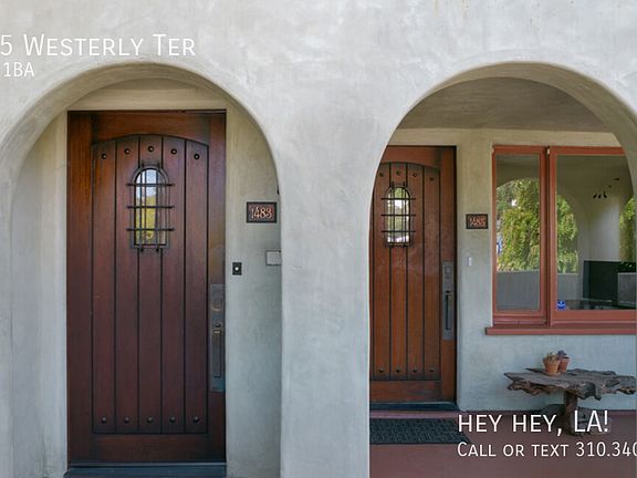 Charming Spanish Duplex in Prime Silver Lake Location Live in the heart of Silver Lake on Westerly Ter, just steps from Silver Lake Blvd and iconic spots like LAMILL Coffee, L&E Oyster, Milk, Alimento, and more. This stunning 1929 Spanish Mediterranean duplex is also just a half-mile from the Silver Lake Reservoir and Recreation Center. Location doesn't get much better! This beautifully reimagined two-bedroom apartment blends original charm with modern updates. Enter through traditional Spanish arches onto a covered porchperfect for morning coffee. Inside, you'll find gleaming hardwood floors, a gas fireplace with a tiled hearth, original sconces, plaster walls, and arched doorways. The open living and dining area is ideal for entertaining. The kitchen features hardwood cabinets, tile counters, a large refrigerator, a vintage gas stove, and a charming breakfast nook with a built-in hutch. A back door leads to a laundry room, extra storage (perfect for a pantry), and the backyard. The two spacious bedrooms, each with ample closet space, are connected by a hallway with abundant linen storage and a vanity. The bright bathroom boasts penny tile floors, a soaking tub, and a separate shower. The serene, park-like backyard, complete with lush landscaping and mature trees, is an entertainer's dream. Enjoy the provided patio furniture, fire pit, outdoor dining table, and string lights. Terms: Minimum One Year Lease. First months rent plus one month rent security deposit will be due at lease signing within 48-72 hours of formal approval. Pets will be considered on a case by case basis with an additional deposit of $300/cat & $500/dog. Owner pays for water, sewer and gardener. Tenant pays for electric, gas, trash, cable, internet and renter's insurance will be required. Non-refundable application fee of $40/applicant to cover credit report. No risk to apply - application fee will not be due until your basic application and supporting documentation is reviewed and you are chosen by the owner for further consideration.