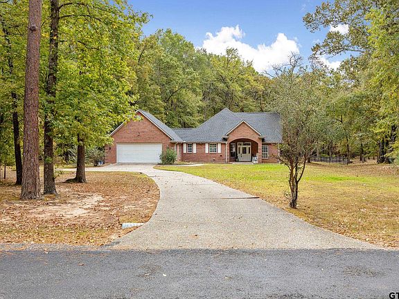 Waterview in a gated community on Lake Tyler East! This beautiful home is nestled in the trees on 1.172 acres. Open floorplan with updated kitchen. The sunroom is the perfect place for a cup of coffee and a good book! Primary suite is split for privacy and features a walk-in closet and en suite bath. Two guest rooms share a hall bath. Great storage throughout the home. Enjoy watching deer, birds, and other wildlife from your fenced backyard!