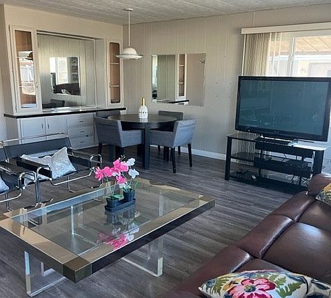 Huge price reduction! Welcome to your new home! Lovingly cared for, beautifully upgraded and move-in ready 1970 Redman Flamingo offers two bedrooms, two bathrooms and a den about 1,400 SF. Light and bright throughout. Spacious living and dining rooms. Efficient kitchen with newer appliances. Relax in den, complete with a bar. Private master suite has large closet and shower/tub. Nice 2nd bedroom and bathroom with step-in shower. Refrigerator and new washer + dryer included. Storage shed, curved awning posts, and new central A/C unit. Recent upgrades also include a new roof, new windows, vinyl plank flooring and fresh paint. Furniture optional. Installed a brand new porch and front entry steps. Come see this beautiful upgrade.
