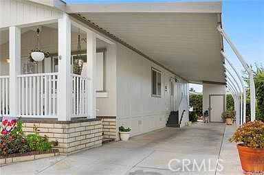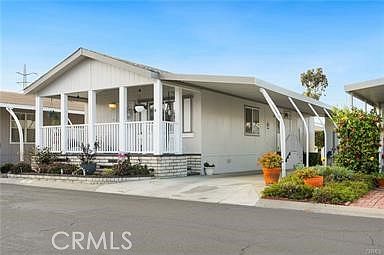 Motivated seller..Relocating..New pricel! This beautiful well maintained home is turn key. Centrally located in the heart of Irvine. 14851 Jeffrey Rd #65 is situated in the gated community called "The Meadows", a 55+ Mobile Home Community, with low land lease. This charming home has great curb appeal with freshly painted exterior, bright white columns and railings that surround the peaceful porch that was recently built in 2023, and a lengthy covered driveway that easily supports 2 cars. The newly replaced roof in August of 2023 comes with a transferable warranty along with the under warranty pavers April 2024 that go around the house to the opposite side of the driveway. The interior of the home has also been updated and features fresh interior paint, wood look flooring throughout, multiple skylights to allow natural light in, cool central air for the warm summer days, and a dedicated laundry room that fits side by side appliances with its own side entrance from your carport. As you enter this Chamberlain model home, you will encounter a spacious living room, with vaulted ceilings and a breakfast nook for those morning cups of coffee. The kitchen is light and bright with crisp ivory cabinets and countertops along with matching white appliances and plenty ofcabinets for storage. Down the hall is the first bedroom that is ample in size and has plush carpeting, vaulted ceilings, and updated panel closet doors. Just a few steps more you have a full bathroom that has been meticulously maintained and cared for. The primary suite, towards the rear of the home, is very accommodating and can handle large furniture pieces, has a 3 panel closet door with tons of space, and an en-suite bathroom that is pristine and looks brand new! The Meadows community offers plenty of amenities to its residents: an outdoor refreshing pool, hot tub room, library, fully loaded commercial kitchen that can be reserved, a game room, craft room and so much more! Conveniently close to the 5 freeway, toll roads, the Irvine Spectrum and the Great Park, make this a superb location to call home.